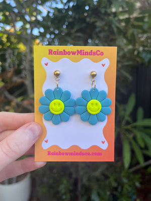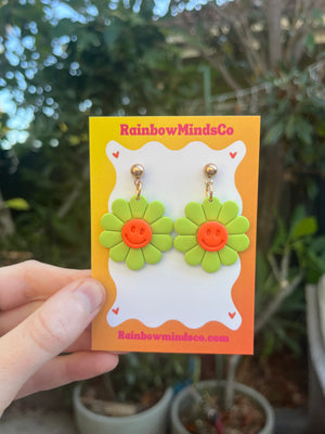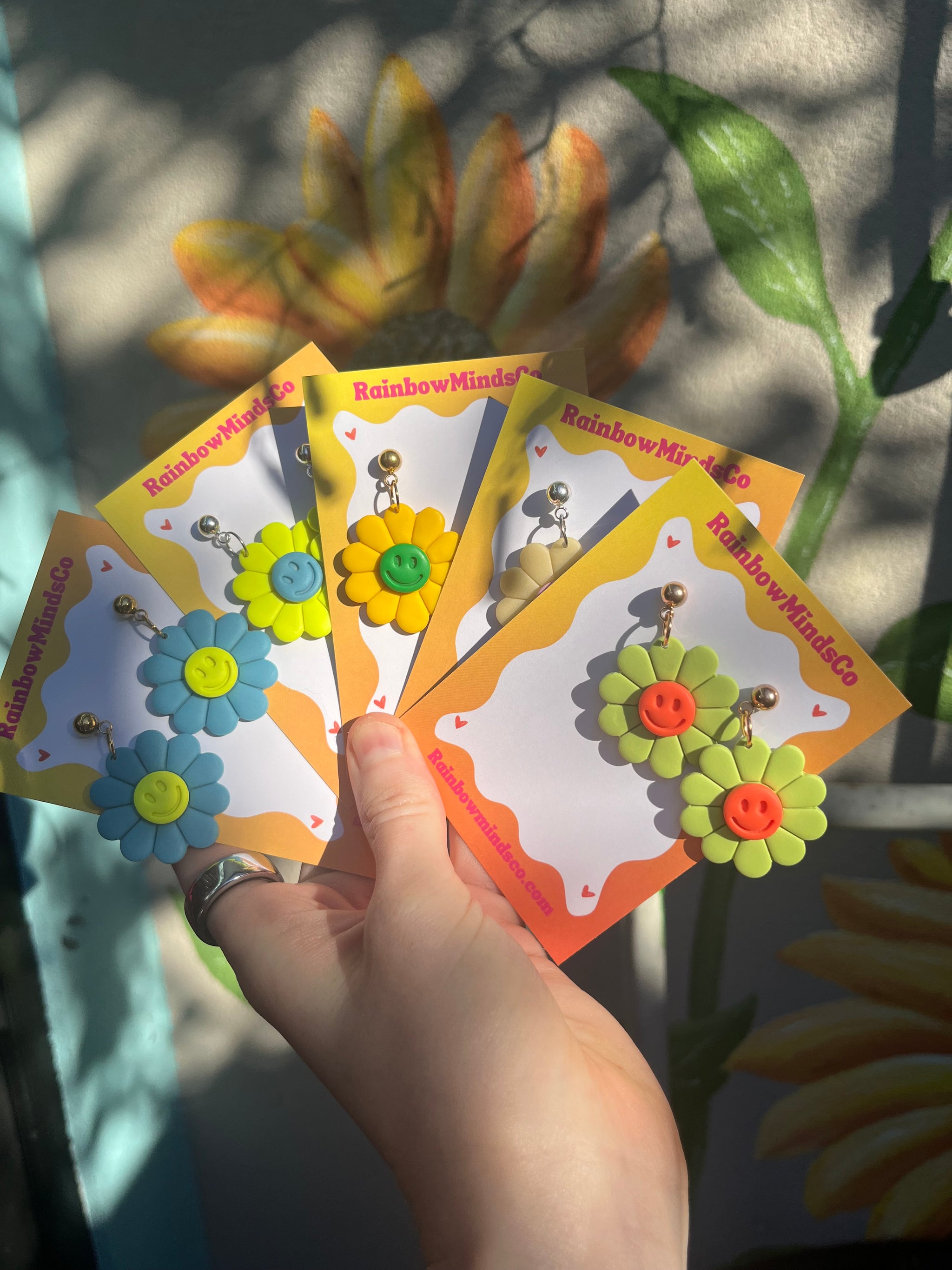 Joy Bloom Polymer Clay Earrings- Smiley face Flower Dangles (Multiple variants)