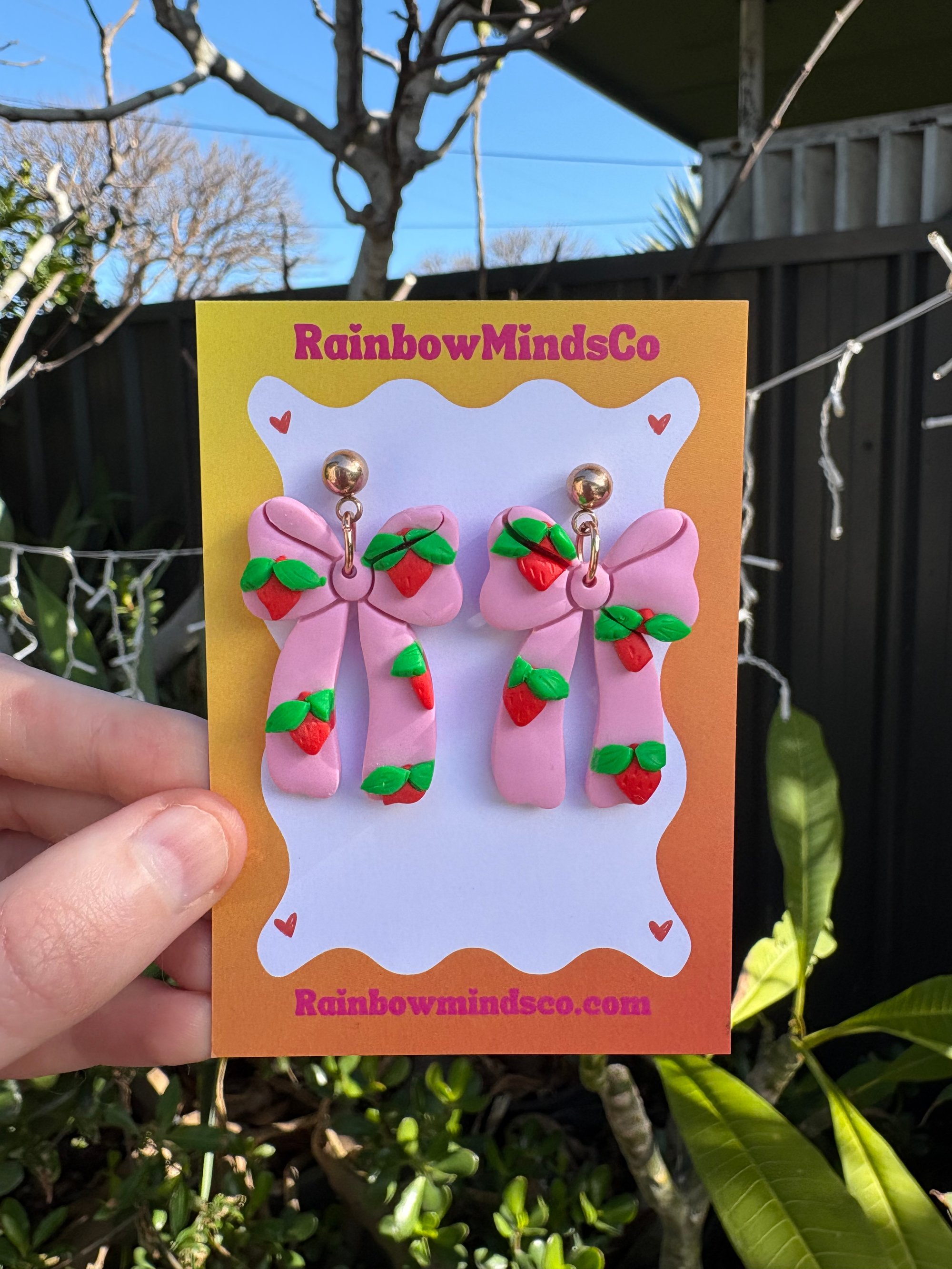 Cute meets fruity with the Berry Sweet Bow earrings. Soft pink bows are wrapped in vibrant strawberry details, creating the sweetest accessory for anyone who loves playful, cottagecore-inspired jewellery. Perfect for adding a pop of fun and charm to everyday wear or springtime adventures. Finished with rose gold surgical stainless steel findings.